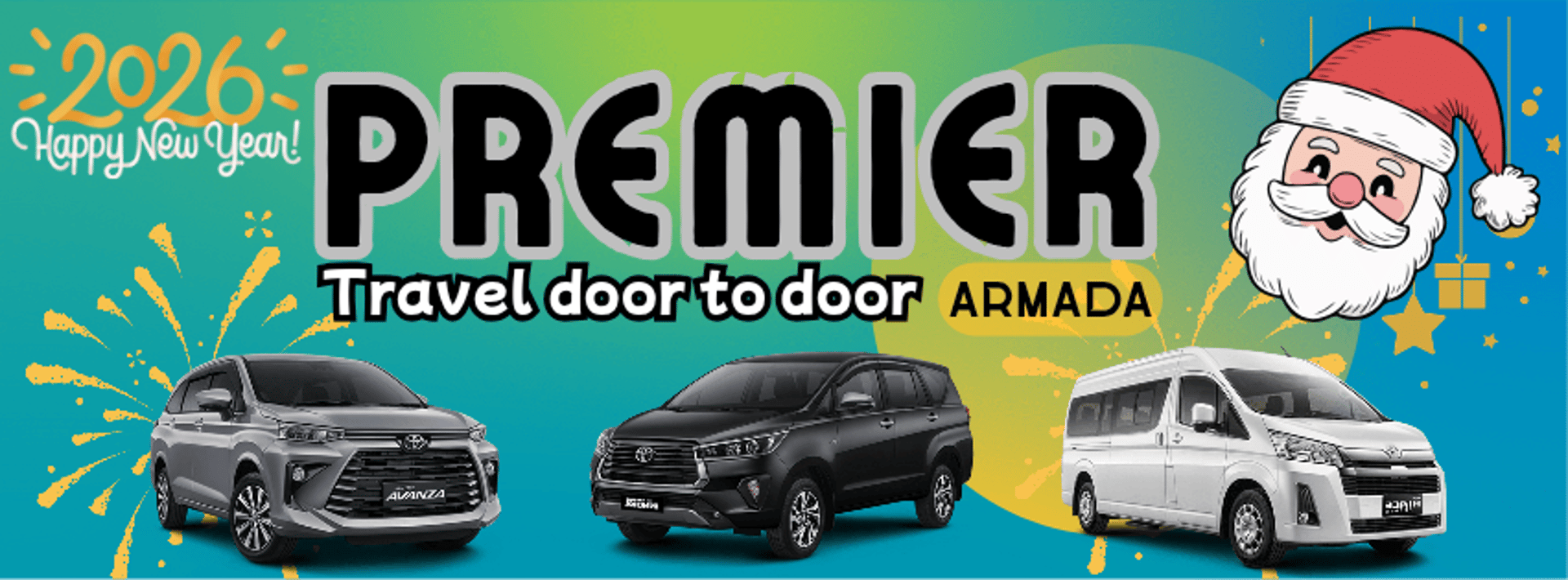Dengan armada yang selalu dalam kondisi terbaik dan didukung oleh pengemudi yang profesional, Premier Armada Travel siap memenuhi kebutuhan perjalanan Anda kapan saja dan di mana saja. Apakah Anda membutuhkan transportasi untuk keluarga, pertemuan bisnis, atau perjalanan wisata, kami memiliki solusi yang tepat untuk Anda.